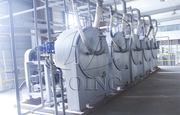 Peeler centrifuge: In sweet potato starch production industry, peeler centrifuge can be used together with vacuum filter for dehydration of starch slurry in sweet potato starch machine. By using peeler centrifuge machine, the production capacity of starch is increased by 50% and decrease moisture content to 36.5%.